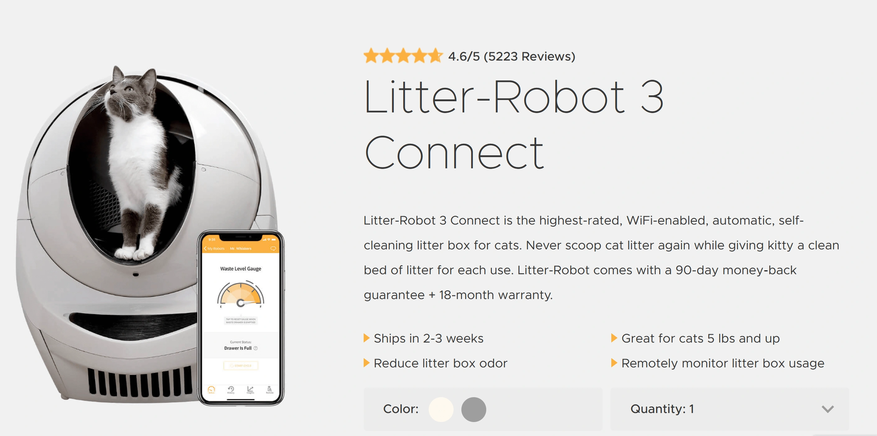 예를 들어 반려동물 물티슈, 그리고 반려동물치약 등과 같은 키워드가 5년간 검색이 70~100%증가했습니다. 또 아예 새로운 제품도 많이 등장하였는데요! Litter-Robot라는 제품은 배터리로 구동되고, wi-fi로 연결된 고양이 화장실을 판매하는데, 사용후에 스스로 세척하게끔 되어있는 고급화장실입니다. 시장이 확장되며 이러한 혁신적인 제품들도 세상에 많이 나오게 되었습니다.